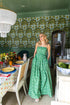 Our Freya dress is a maxi dress that features a vibrant kelly green color with charming white flowers scattered throughout. The dress is designed with adjustable straps, allowing for a customizable and comfortable fit. The dress also includes convenient pockets and a fitted bodice. With its eye-catching color, lovely floral pattern, and flattering fit, this dress combines style and functionality for an effortlessly chic look.